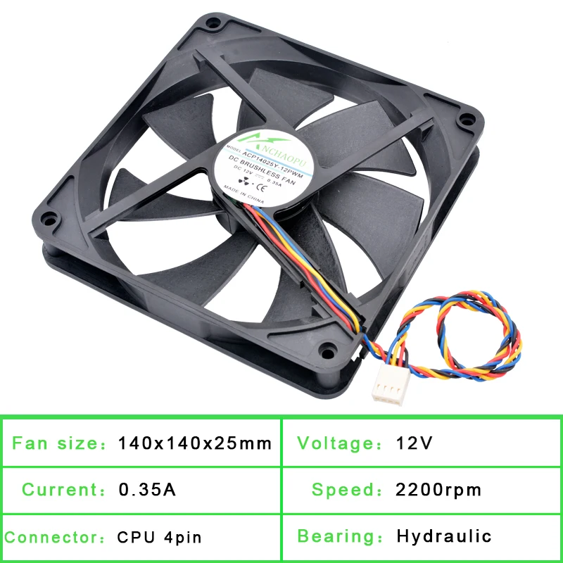 ACP14025Y-12PWM 140x140x25mm DC12V 0.35A 4pin pwm cooling fan