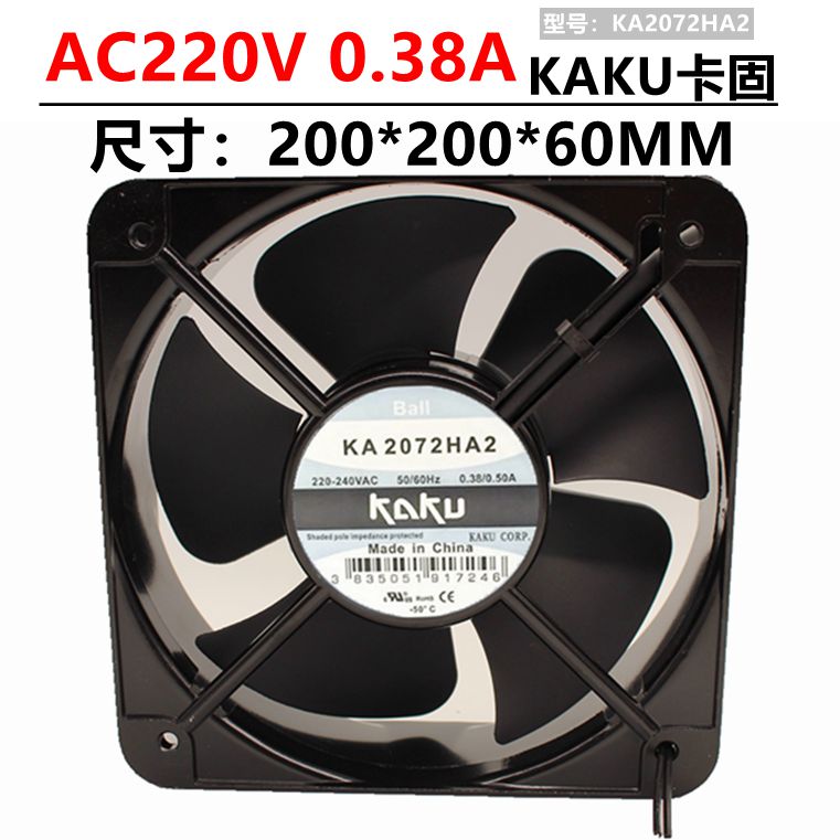 Description ¡ñModel: KA 2072 HA2B ¡ñ Brand: KAKU card solid ¡ñSpecification size: 208x208x72mm ¡ñ Bearing structure: ball bearing ¡ñVoltage: AC 220¡«240V/110¡«120V/380V ¡ñPacking: separate packing box, 8 sets / box ¡ñFrame: high-grade metal magnesium alloy ¡ñAir blade: high-grade metal magnesium alloy ¡ñ Bearing: High precision, long life low noise ball bearing;...