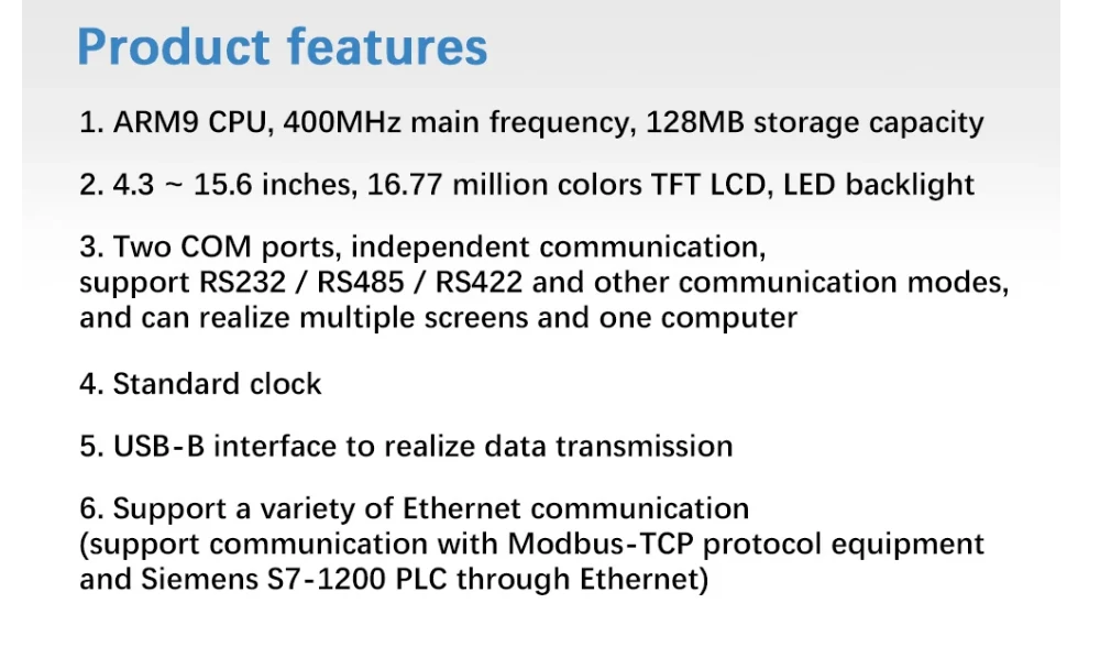 Product description 16.77 million colors, fine and traceless image quality, and the display effect is comparable to that of LCD Download, start and run, trinity ultra-high speed response Support C language script function, operation, free protocol writing and drawing, and improve programming freedom Support BMP, JPEG format...