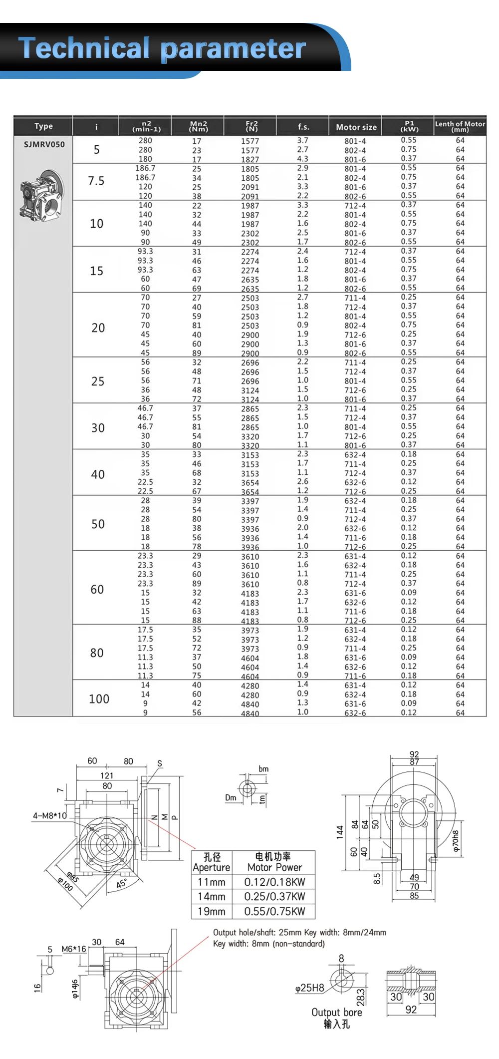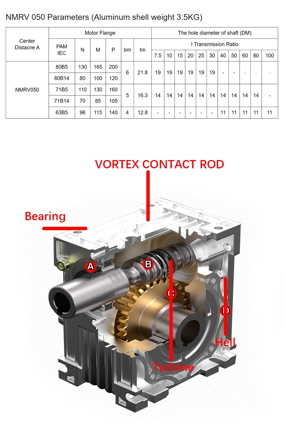 Servo Motor NMRV050 Gearbox Worm Gear Reducer Ratio 5 :1/100: 1 Input Shaft 11/14/19mm Input Holes 25mm for CNC