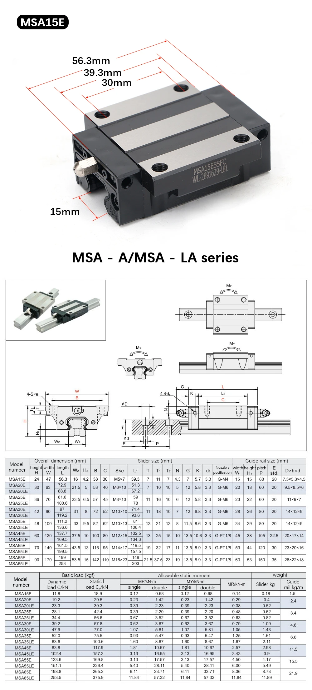 Taiwan Original PMI MSA Series Linear Guide Slider Block MSA15/20/25/30/35/45/55/65 S LS E LE for Machine CNC Router