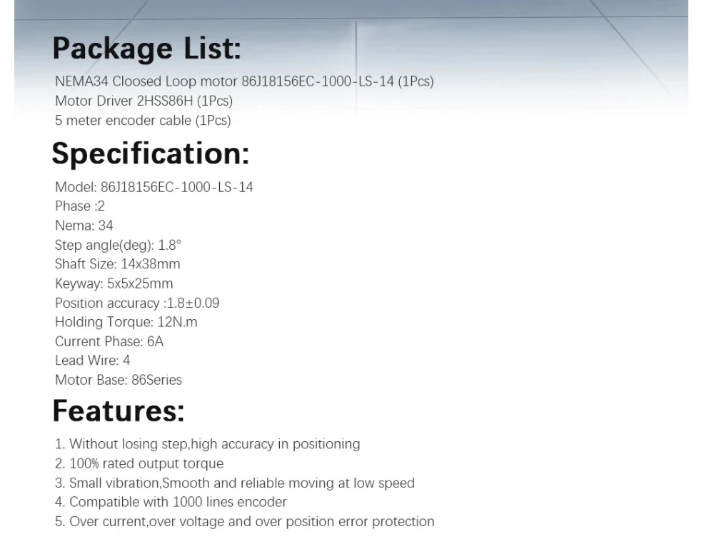 JMC NEMA23 NEMA34 With Brake 2HSS57-N 2HSS86H-N 2-Phase Step Servo Driver Match Motor 42/57/60/86 For CNC Router Machine