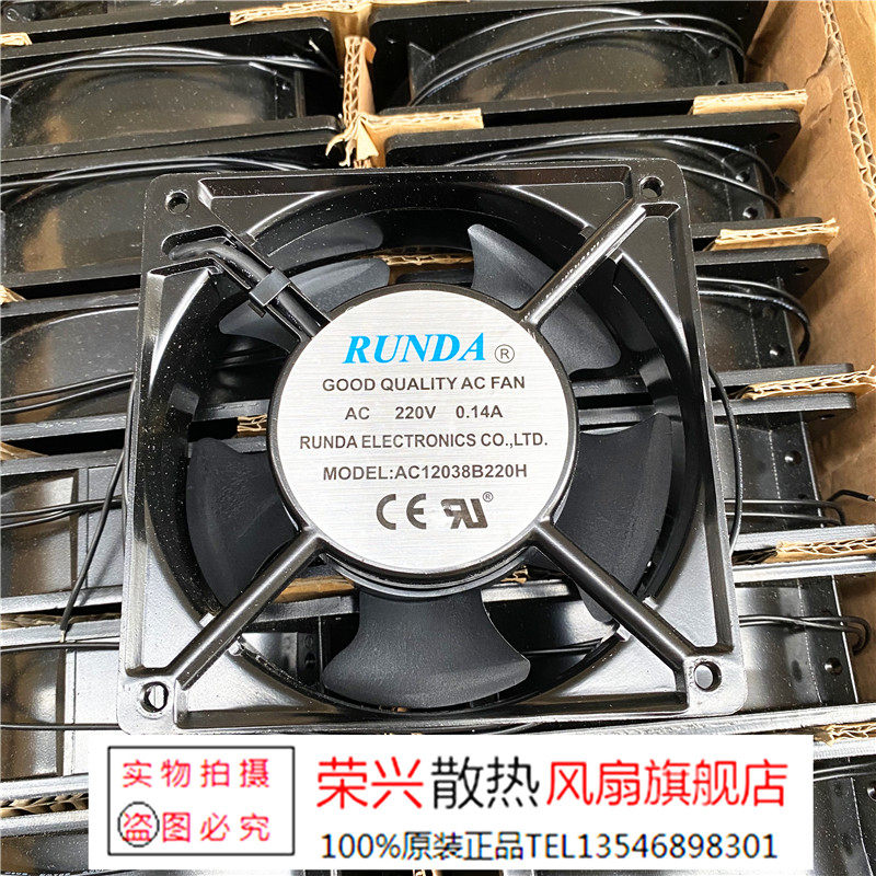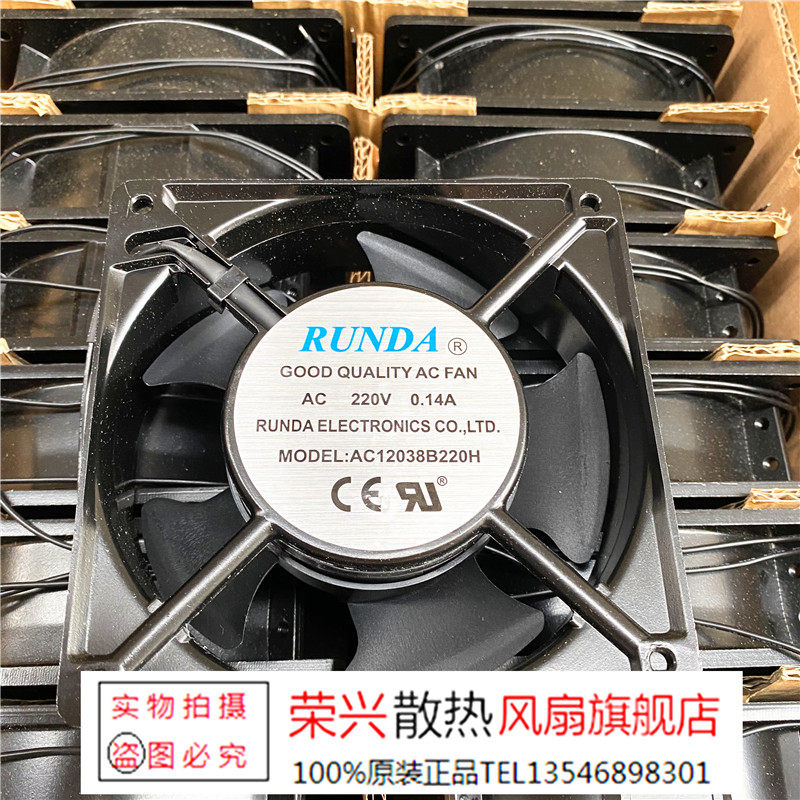 RUNDA Model Number: AC12038B220H Voltage / Ampere / Lead / Size AC 220V 0.14A 120x120x38mm 2-Wire Item Condition:  New Warranty: 3 Months Warranty     (一)、产品保证        本店所售商品均是三个月保修,为了避免产生不必要的快递费用,发货之前所有产品都会经过专业人员检测,确保没有问题之后方给客户发货,所以请大家放心购买。  (二)、收货提示        验货签收——买家收到货物后,敬请当着快递面签收验货,货物损坏当面拒收退给快递公司!验货时请一定亲自打开查看,清点清楚,如有不符请当着快递的面立刻联系卖家。 (三)、需退换货          买家原因提出退换货,买家承担运费,卖家原因,卖家承担运费。协同发展,共同创造,合作共赢。收到货七天内,如购买的产品不适用,无条件退款退货。(前题是保证退回的商品完好包装齐全,邮费不予退还,只退还物品的成交价格),三个月保修期内如遇商品的质量问题需保修或换货的,来回运费请买家自理!         On...